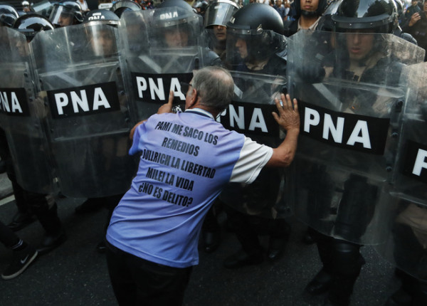 El presidente Milei sostiene su pulsión verbal y descalificante, convencido de que con esa conducta “gana”. Así es que recrea sus eslóganes brutales, adaptados a la coyuntura: “niñas y niños enfermos del Garrahan ¡afuera!, profesionales de la salud ¡afuera!, personas con discapacidad ¡afuera!. Claro que los jubilados sufren su "¡afuera!" hace rato, a fuerza de palos, represión y hambre. Acaso, ¿todos ellos no saben que “no hay plata”?, ¿Y que lo primero y sagrado es pagarle a los prestamistas de Wall Street y de las cities criollas?. Últimamente va modelando su política y accionar junto a su ministra Bullrich y su vocero Adorni, así es que nos encontramos con otros agregados: fotógrafos ¡afuera!, cultura, teatros y bibliotecas populares ¡afuera!, tareferos misioneros ¡afuera!; potenciando su permanente agresividad hacia la parte del pueblo que rechaza, o cuestiona sus acciones y dichos. Lo hace amparado por el DNU 70/23 y la Ley Bases votada por sus aliados de derecha y los amigables con la justificación de que “hay que darle gobernabilidad”.