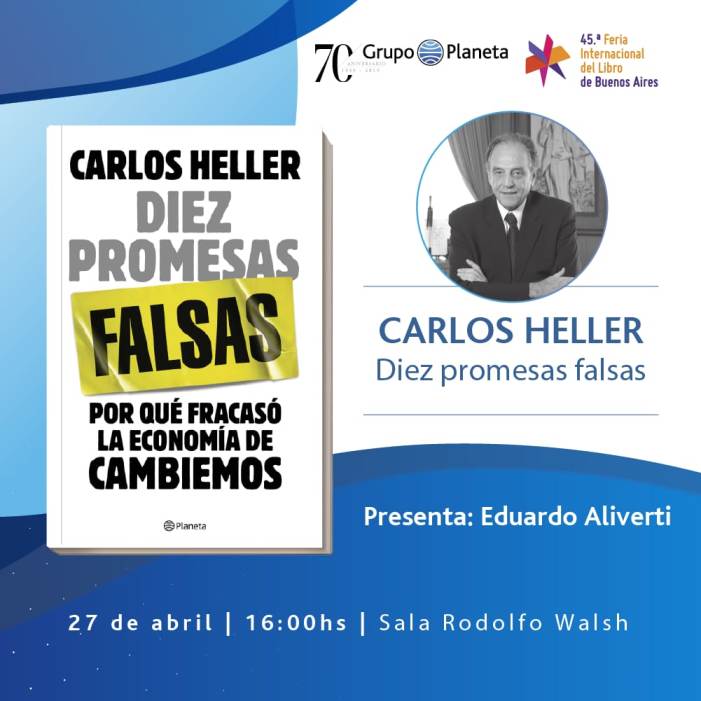 Con la presencia del periodista Eduardo Aliverti, el próximo sábado 27 de abril a las 16 en la sala Rodolfo Walsh de la Feria Internacional del Libro de Buenos Aires, Carlos Heller presenta “Diez promesas falsas. Por qué fracasó la economía de Cambiemos”, un texto de su autoría que acaba de publicar Grupo Planeta.